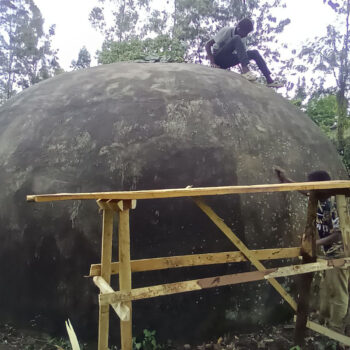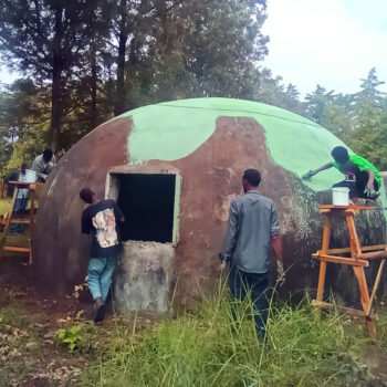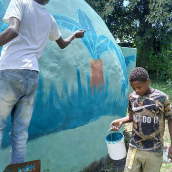 Originally designed to perpetuate the image of the local housing typical hut, these domes stand for educational purposes. They were made with a balloon cast, cover with concrete. Several have been demolished, but for the remaining Kids Hope was able to bring an artist who has a very good experience working with kids. The kids participated very well in that; for some of them, it was an opportunity to exercise their gift. Afterwords they had a color powder party to celebrate.